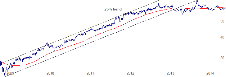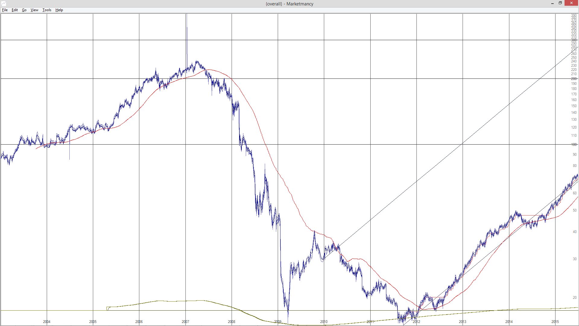 Marketmancy is an augmented intelligence market trading system. It finds long term fast trends with low volatility. Above is an example of an algorithmically defined trend using major asset classes that ended in 2012. The trend goes back to 2002 with a little more volatility.